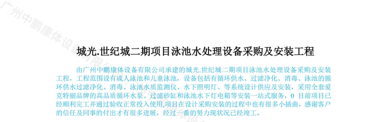 城光.世紀(jì)城二期項目泳池水處理設(shè)備采購及安裝工程
